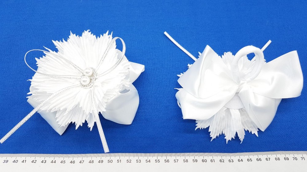 Бант атласный для волос белый 15 см KG-4248 вид 6 жатый капрон
