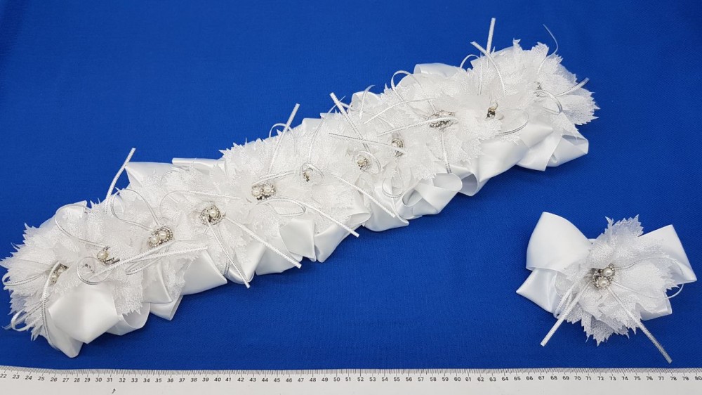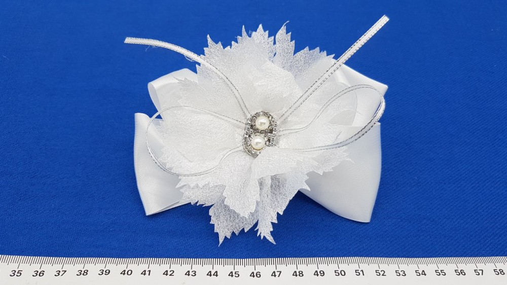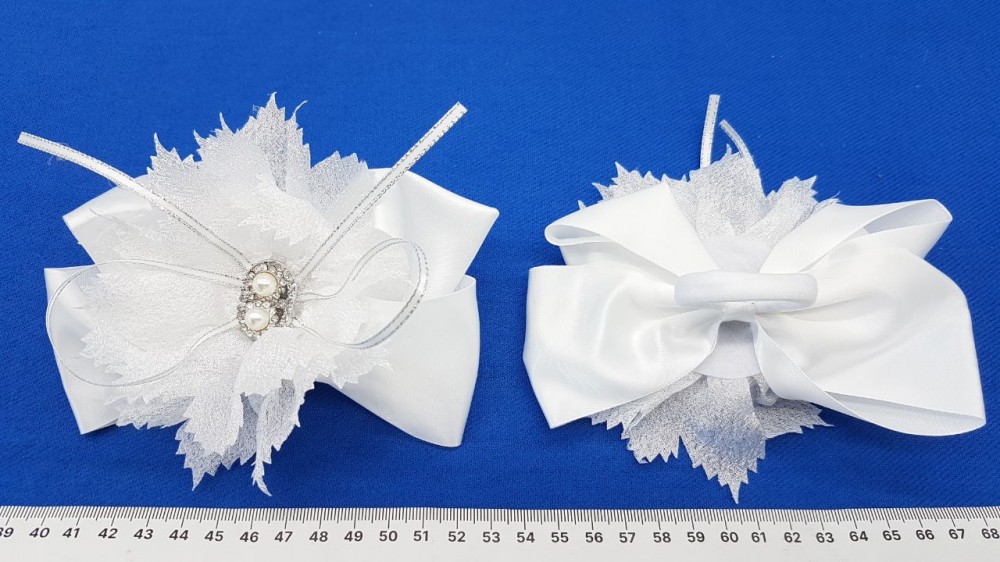 Бант атласный для волос белый 15 см KG-4248 вид 7 листья