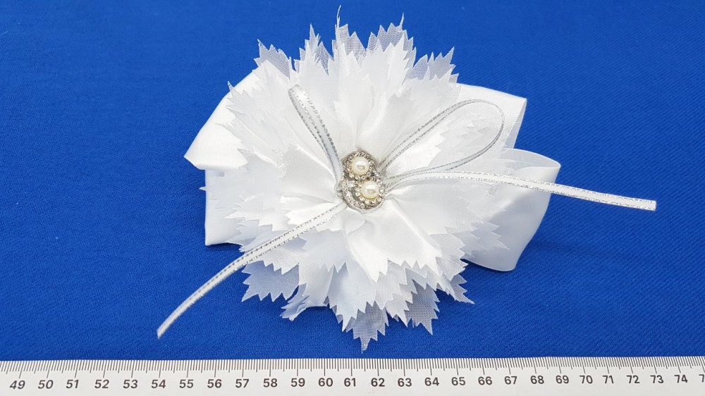 Бант для волос белый 15 см KG-4248 вид 2 василёк