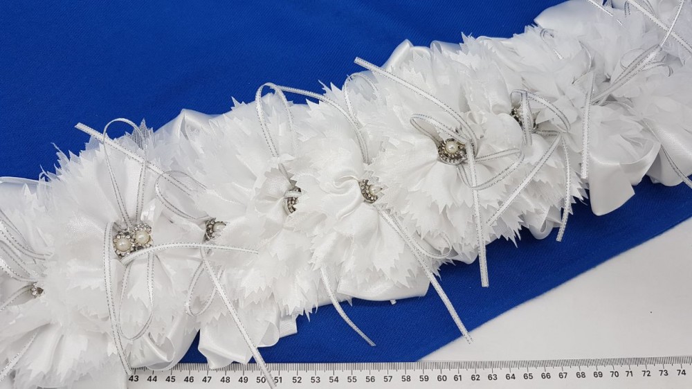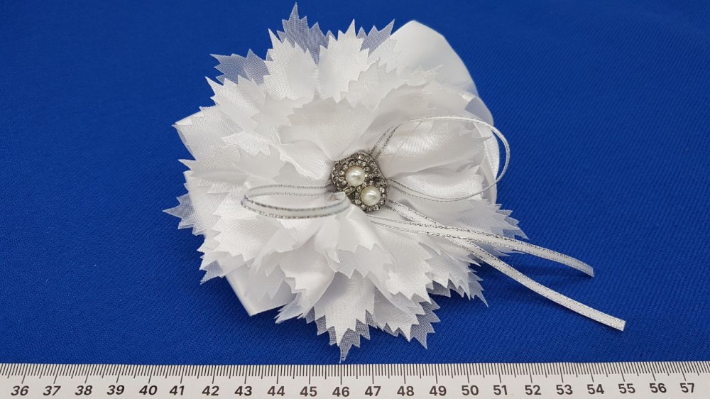 Атласный бант на резинке, нейлон,цветок из атласа с жемчужинами. Диаметр банта: 13 см. Резинка 4 см