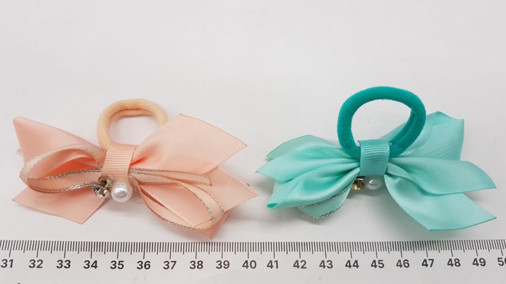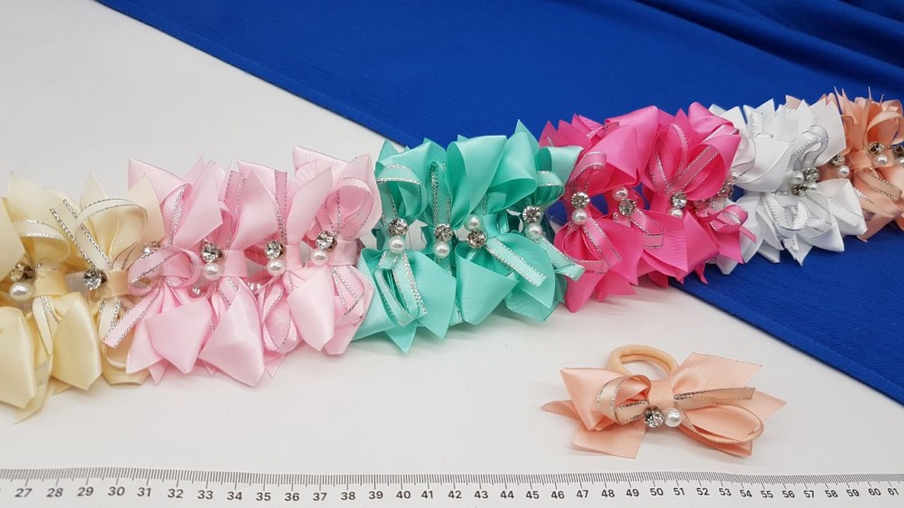 Бант из атласной ленты 10 см ширина 4 см, украшение жемчуг и страз, Резинка 4 см