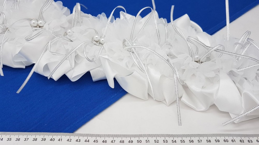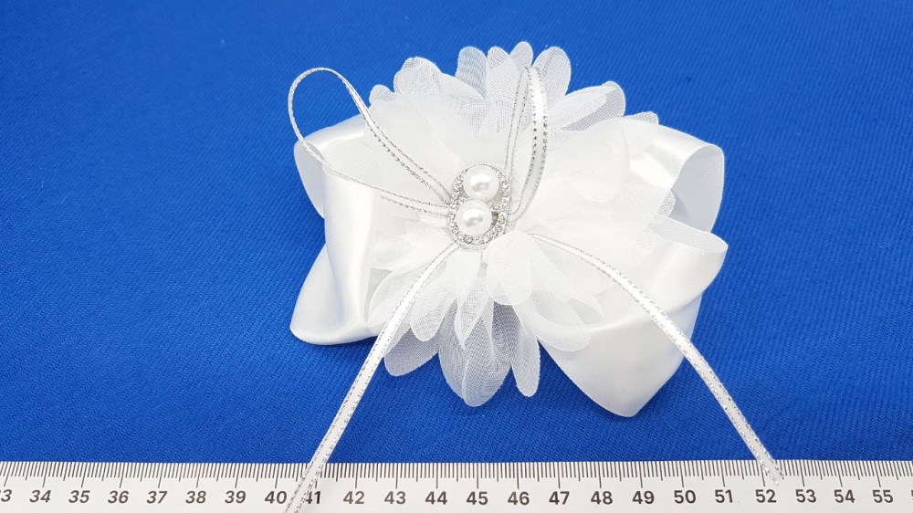 Бант на резинке, кружево, нейлон. Диаметр банта: 13 см. Резинка 4 см