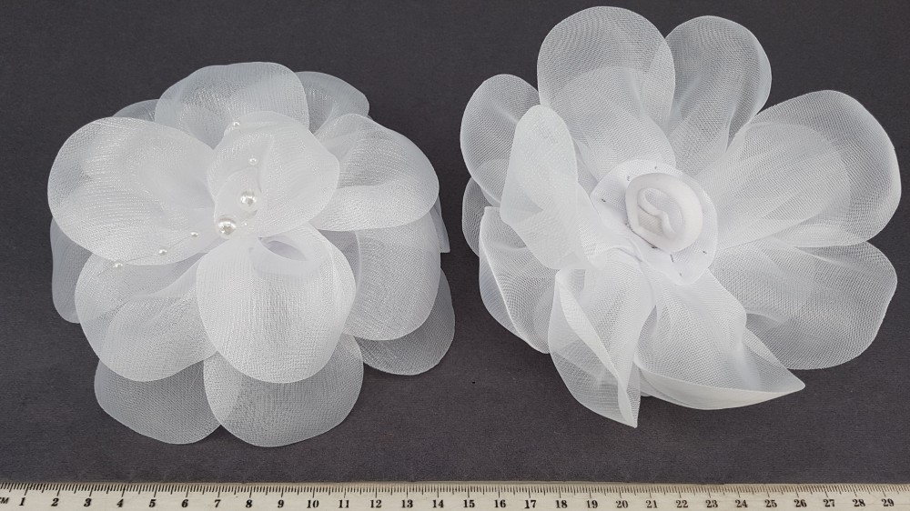 Бант белый на резинке с бусинками. Диаметр 16 см