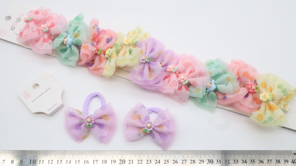 Ткань, сетка, пластик, нейлон. Бант 6,5 см., резинка 3,5 см.