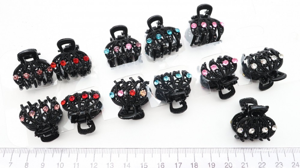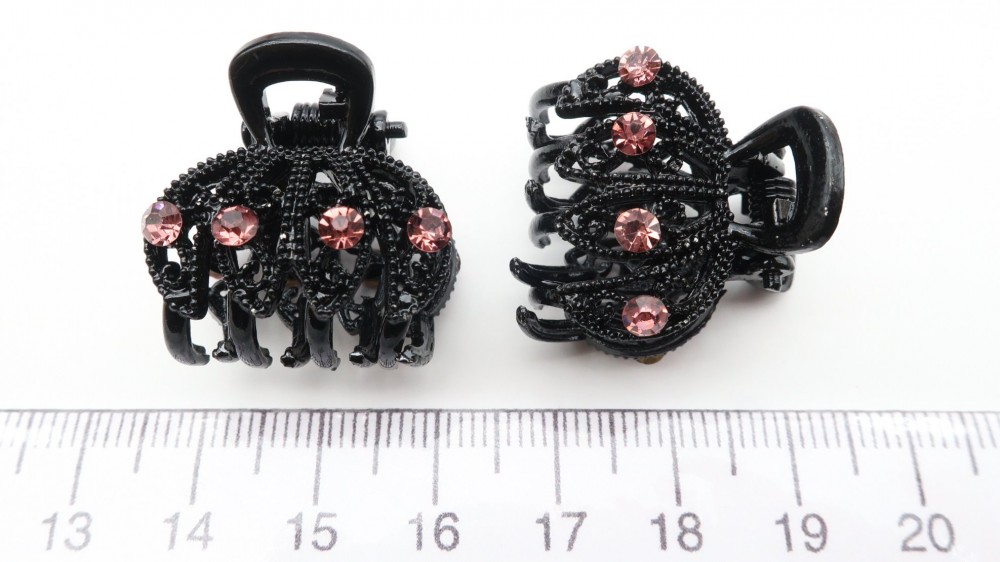 Крабики для волос чёрные арбуз цв стразы 2 см KG-62