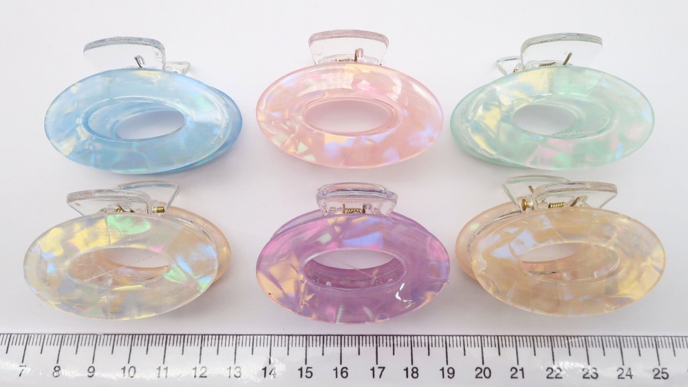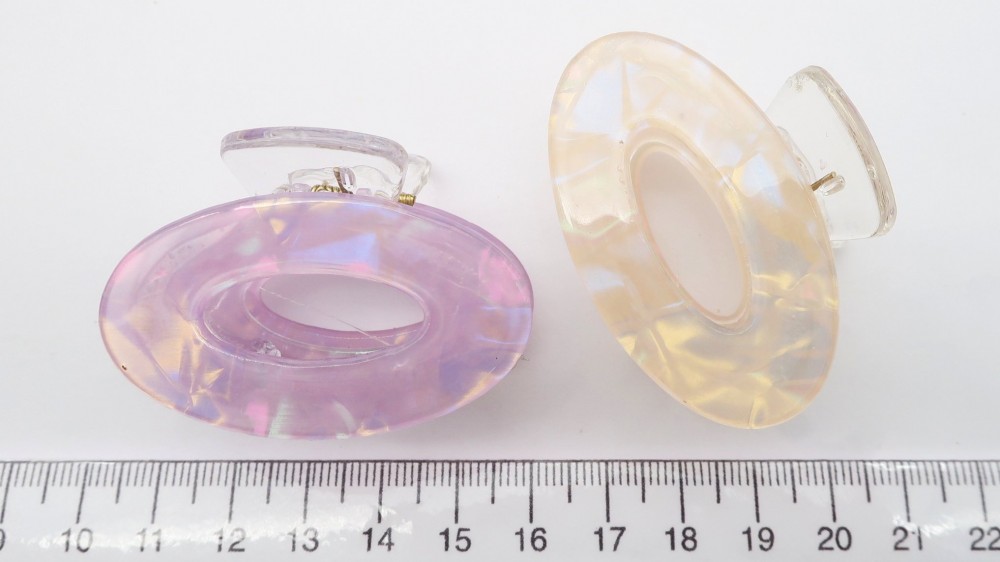 Глянцевый пластик с перламутром. Длина 4,5 см., высота 3 см.