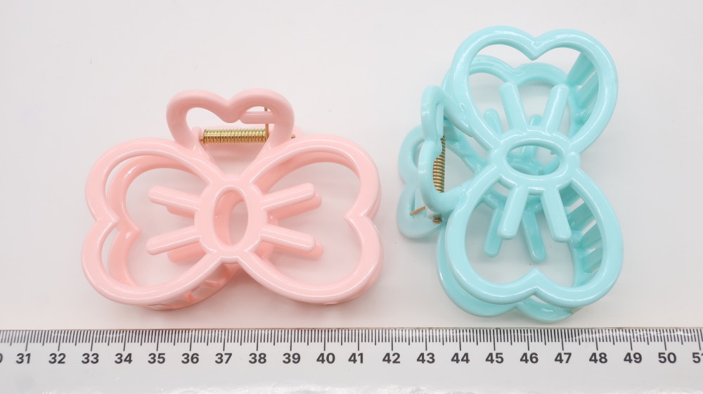 Глянцевый пластик, золотая пружина. Длина 9 см., высота 6 см, 3 цвета.