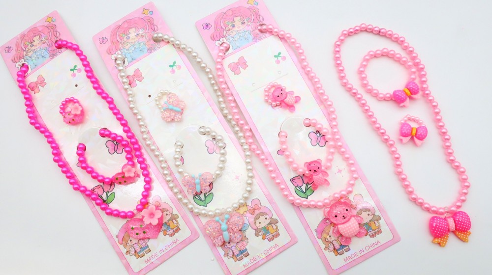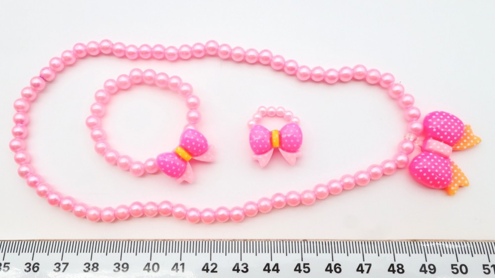 Пластик, бусины, резинка. В наборе: бусы, браслет, колечко