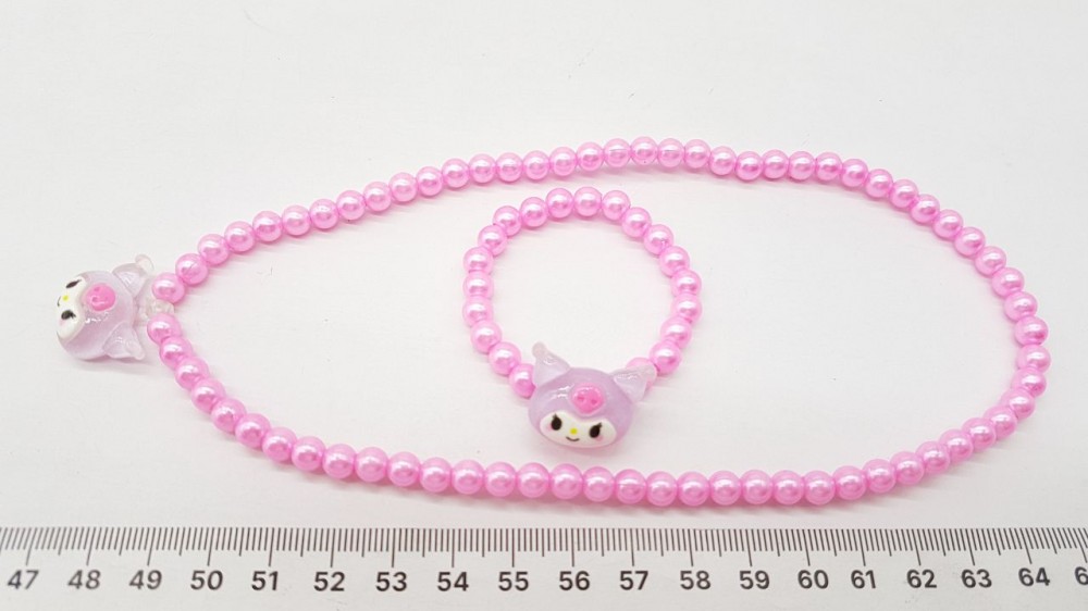 Пластик. В наборе бусы и браслет, кулон кошка