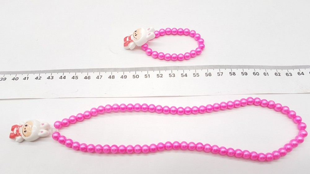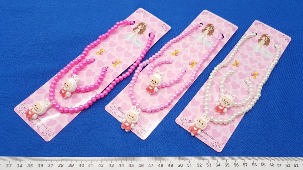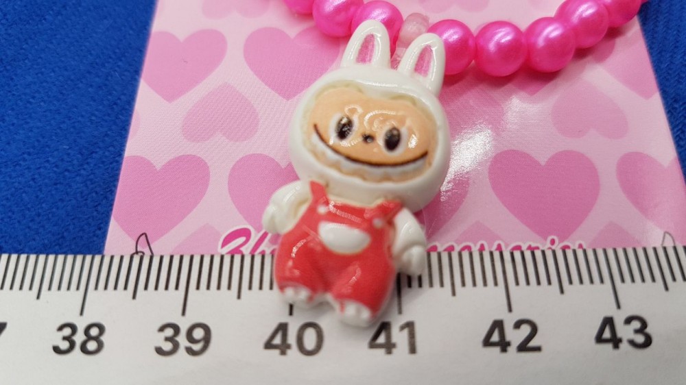 Пластик, жемчуг. В одном наборе: бусы и браслет. Украшение лабубу в комбинезоне