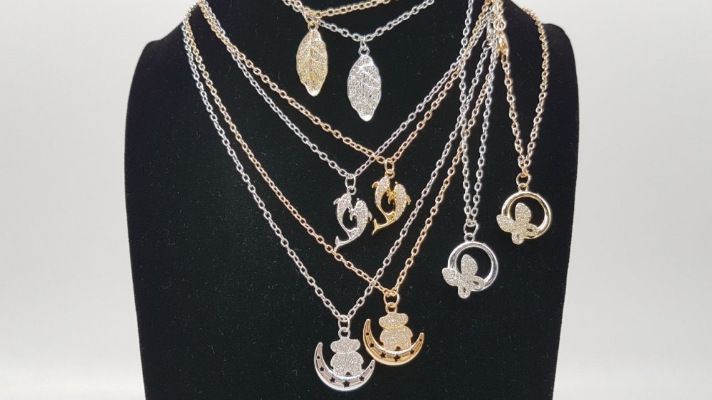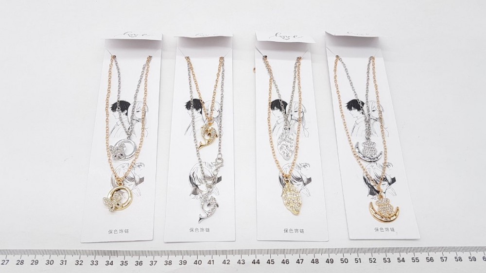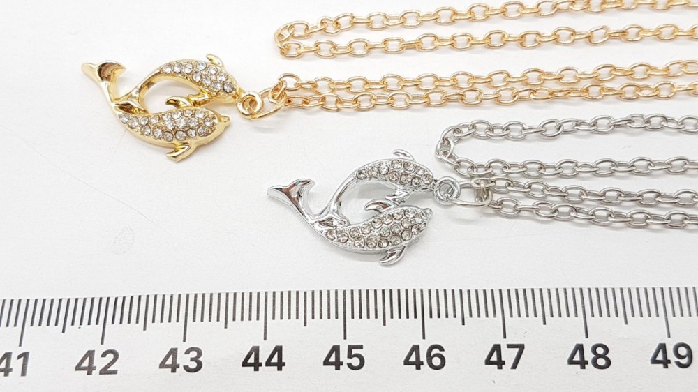 Металл, стразы. В наборе две цепочки с подвесками. Длина цепочки 25 см., длина подвески 2 см.