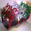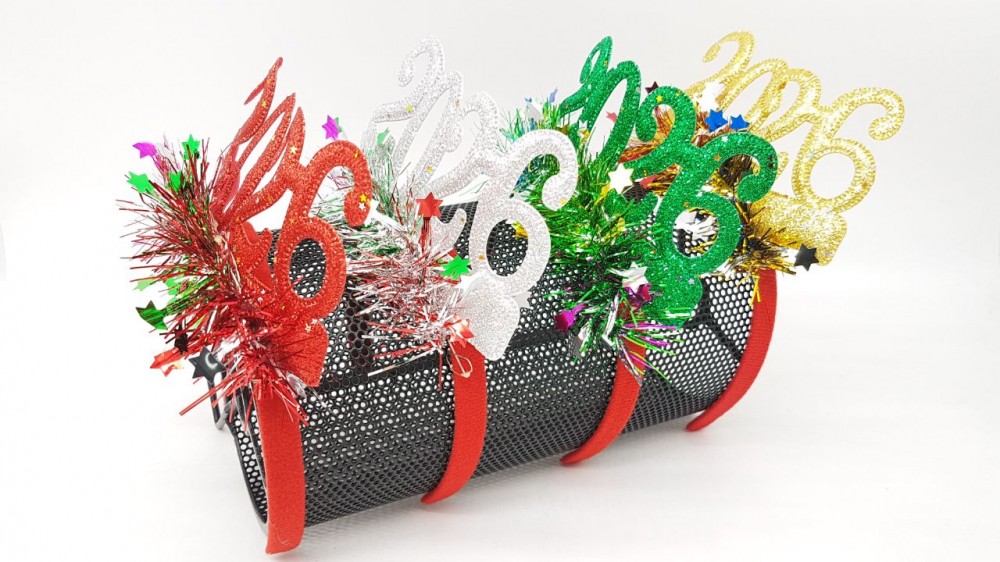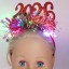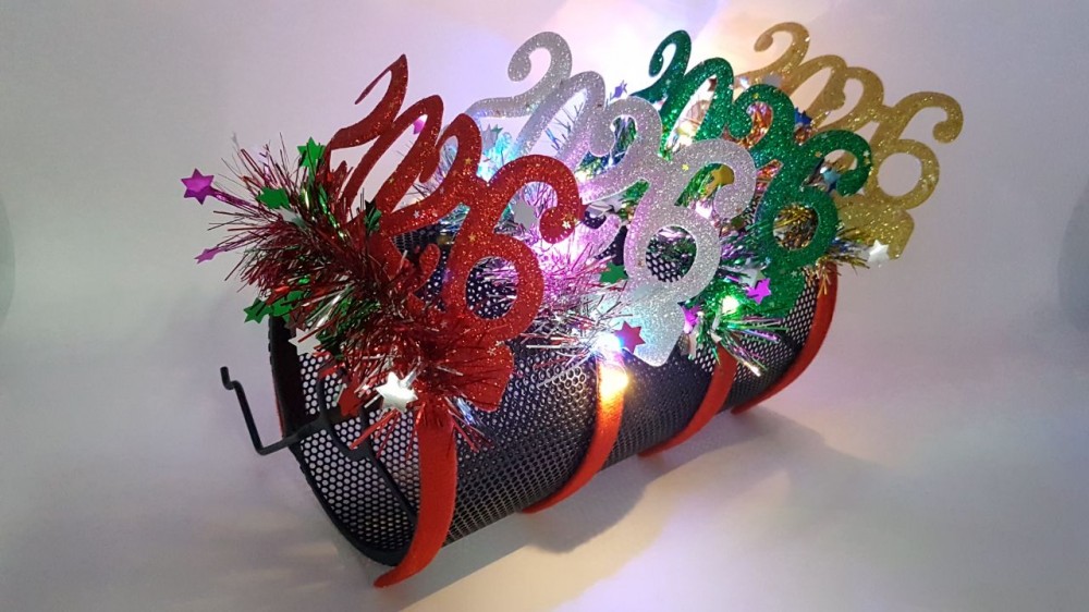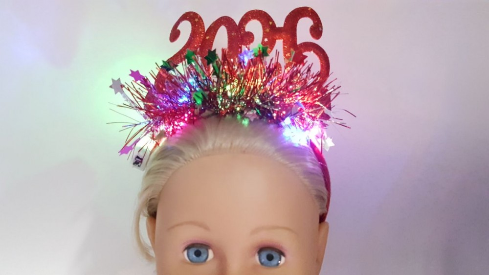 Пластик, бархатное напыление, мишура. Цифры из синтетической ткани высотой 9 см. Светятся при нажатии кнопки.