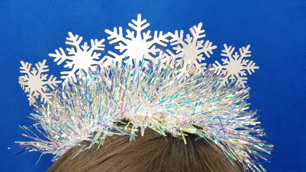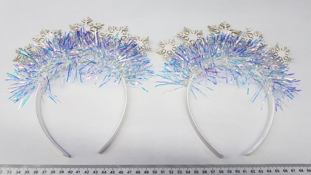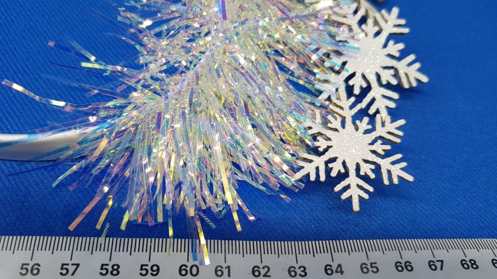 Пластик, атлас, мишура, блестки. Снежинки от 4 см до 6 см.