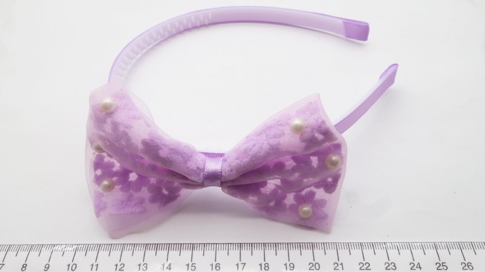 Пластик, ткань, бусины. Ободок 1 см., бант 11 на 7 см.