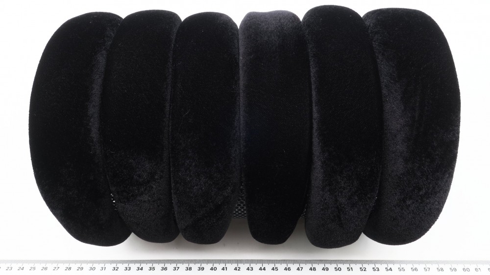 Пластик, бархат, поролон. Ширина 4 см., высота 1,8 см.
