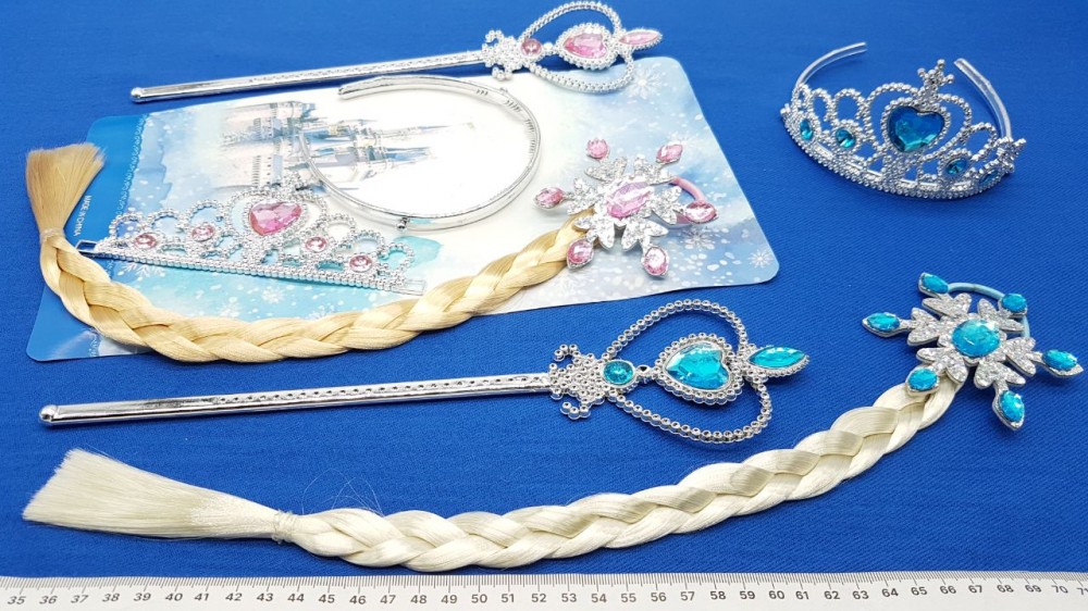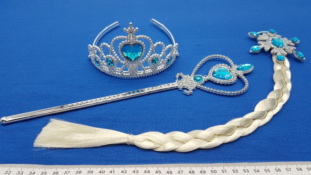 Пластик, ткань. Диадема 7 см, палочка 30 см, коса 35 см, резинка 4 см
