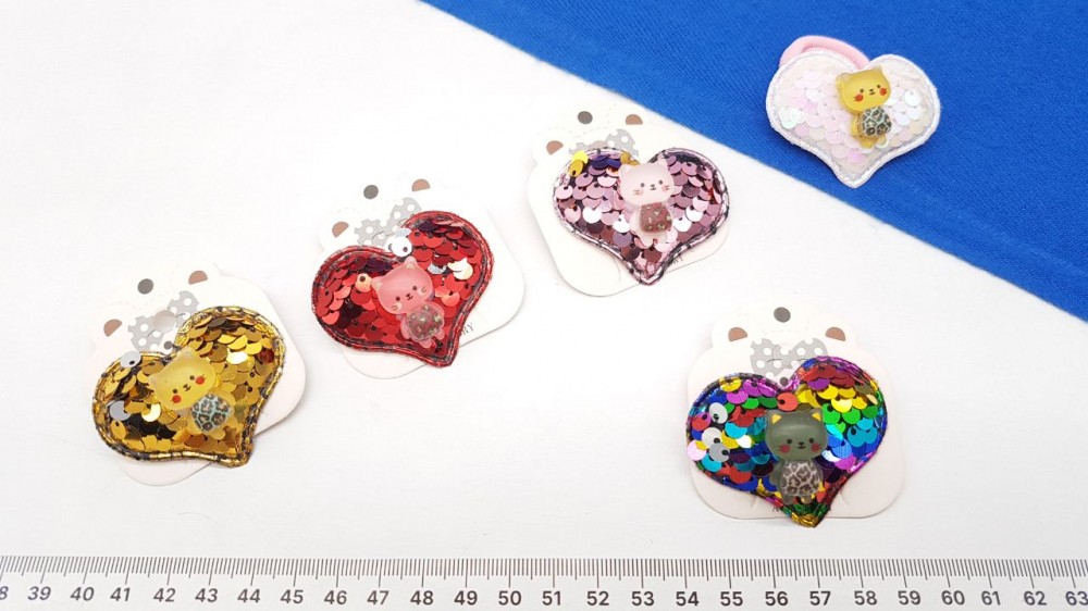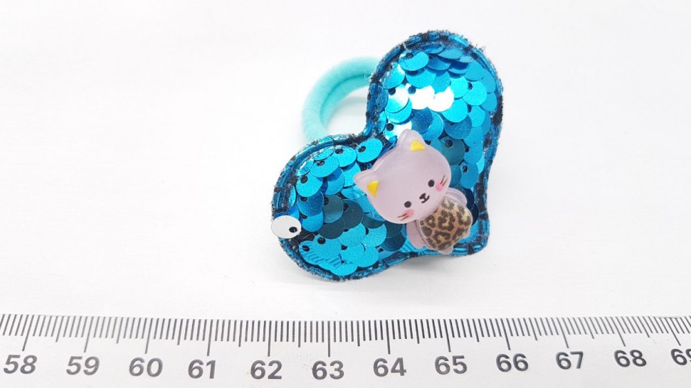 Резинка нейлон, диаметр 3 см. Сердце пайетки 5см*4см, кошка пластик 1,5см*2,5см
