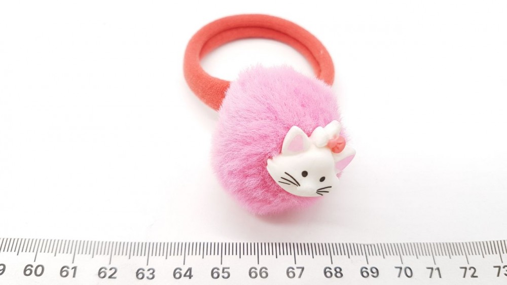 Резинка 5 см, шарик мех 4 см. Украшение пластик 2см*2см