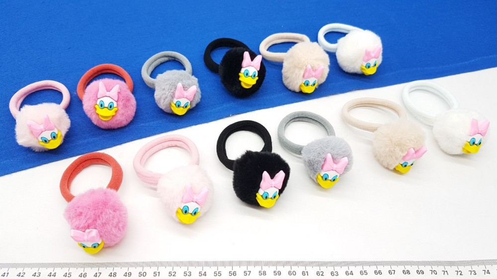 Резинка 5 см, шарик мех 4 см. Украшение пластик 3см*2см