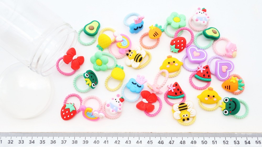 Нейлон, силикон, баночка. Диаметр 2 см., фигурки 2 см.