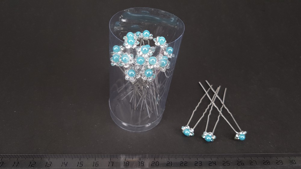 Шпильки KG236C ромашка с жемчужиной голубой