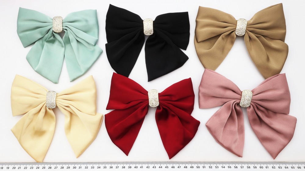 Иск. шелк, металл, стразы. Бант 15 на 15 см., автомат 9 см.