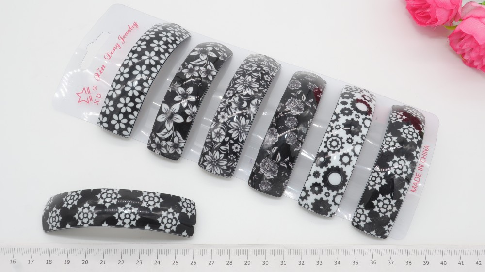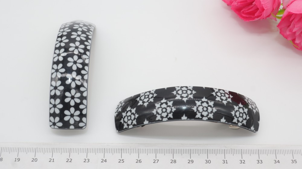 Глянцевый пластик, металл. Длина 9 см., ширина 2 см