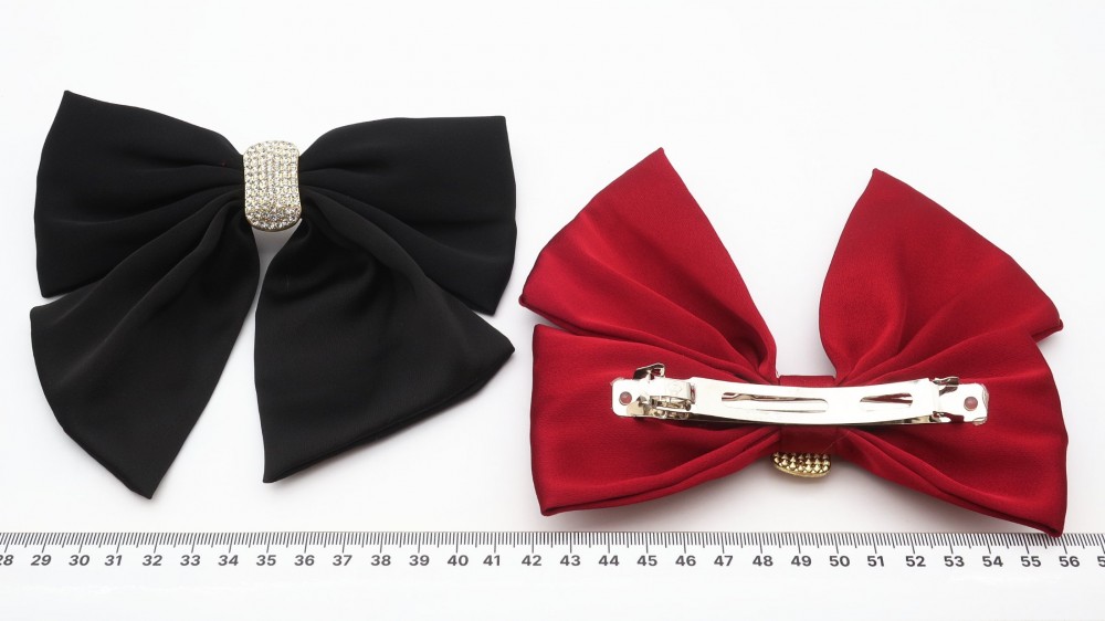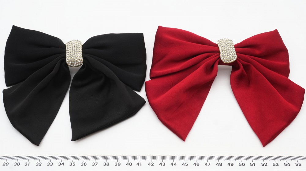 Иск. шелк, металл, стразы. Бант 15 на 15 см., автомат 9 см.