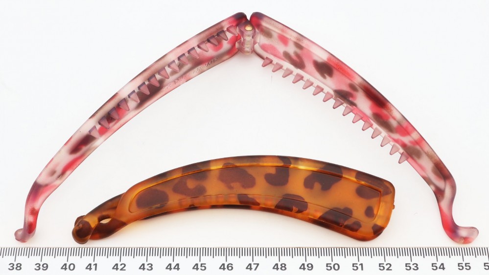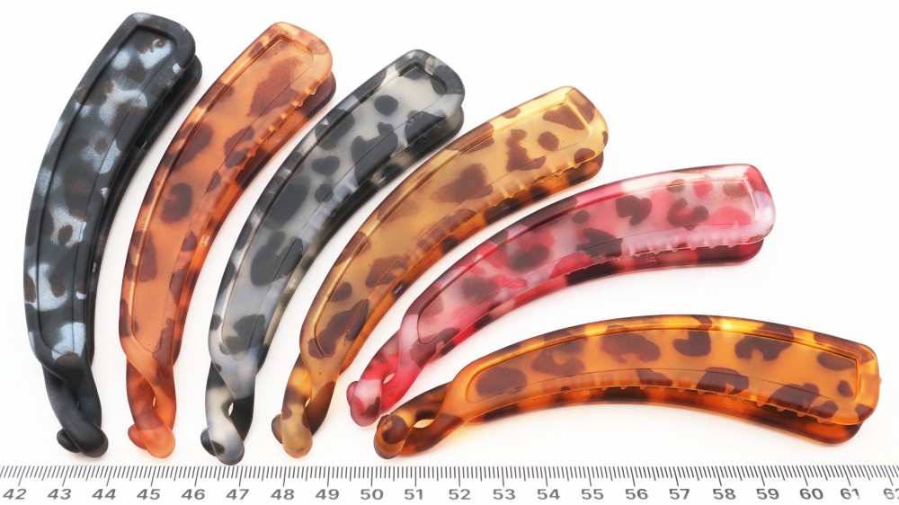Пластик матовый. Длина 12,5 см., ширина до 2,5 см.