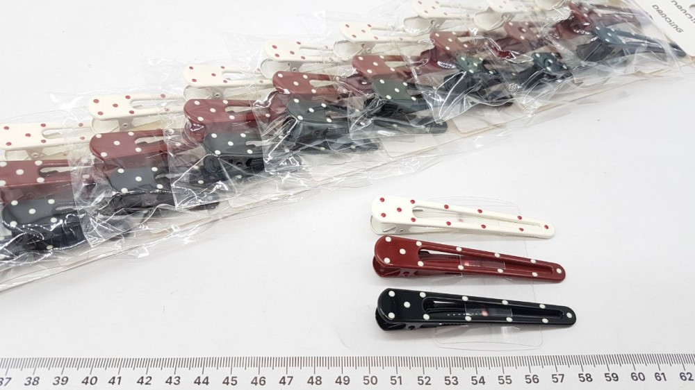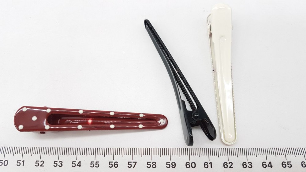 Пластик глянцевый. Длина 8 см., ширина 1,3 см.