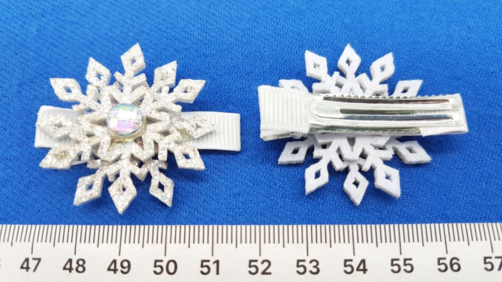 Металл, искусственный фетр, репс. Зажим 5 см. Снежинка диаметр 4 см