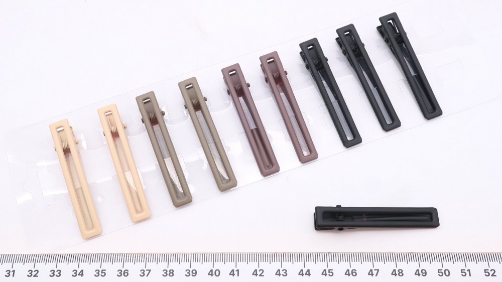 Матовый металл. Длина 6 см, ширина 1 см